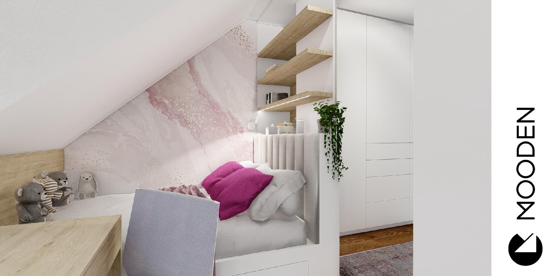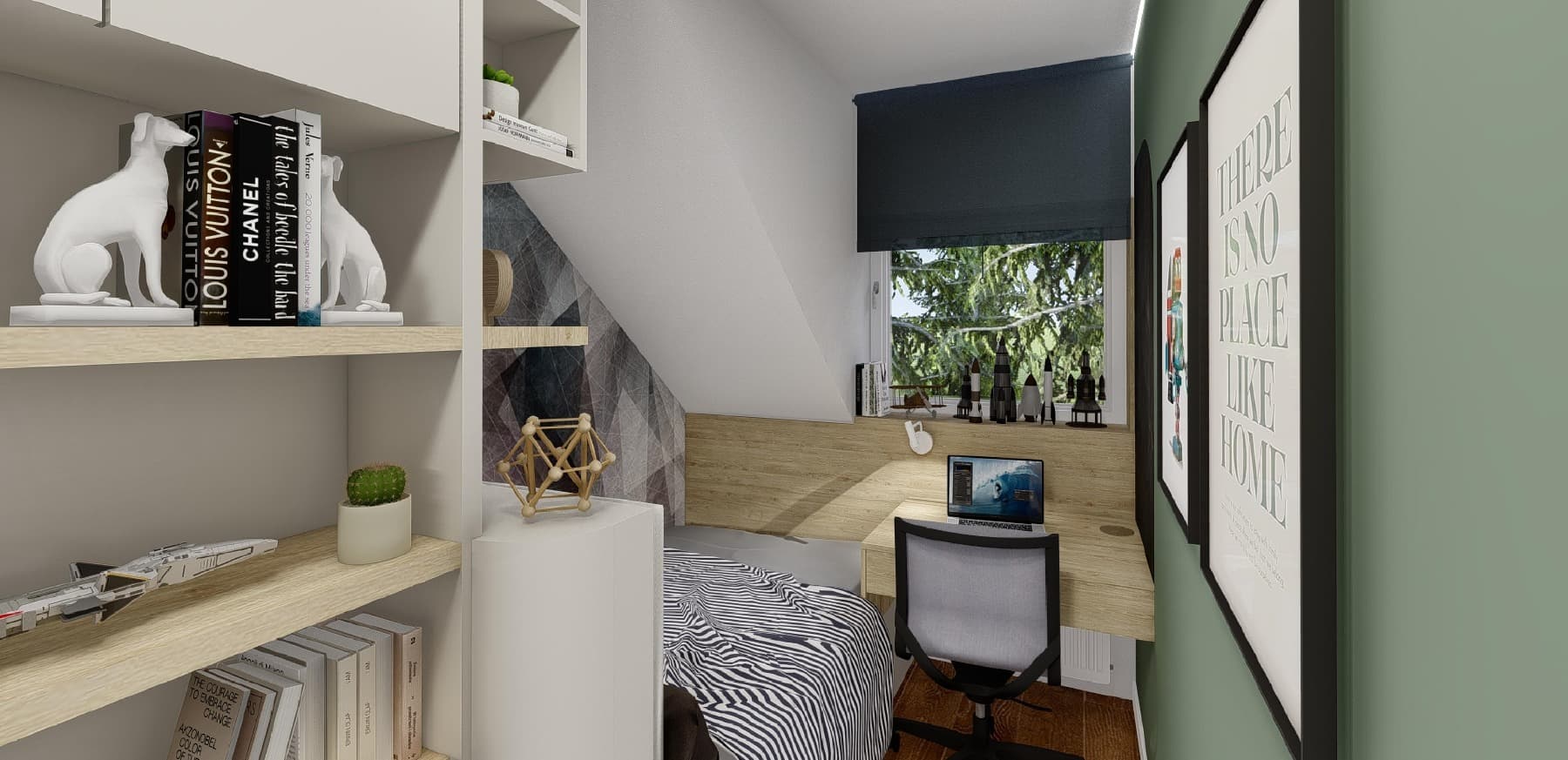 Podkrovní byt, kde naši klienti bydlí, sloužil původně rodičům a dvěma malým dětem. Původní ložnice a jeden společný dětský pokoj dlouho bezchybně jejich potřebám vyhovovaly. Časem děti vyrostly a rodinná situace se změnila. Děti začaly toužit po vlastních pokojích, kde by měly své soukromí.