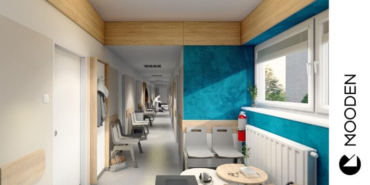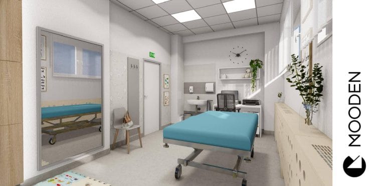 Pokud hledáte interiérového designéra, který má zkušenosti s návrhy interiérů zdravotnického zařízení a umí naslouchat vašim jedinečným potřebám, neváhejte nás kontaktovat. Podívejte se také na předchozí návrhy pro nemocnici Nymburk – například na už hotové Gynekologicko-porodnické oddělení, kde jsme navrhli také nadstandardní porodní pokoje a luxusní apartmány pro novopečené maminky, nebo na radiodiagnostické či rehabilitační oddělení.