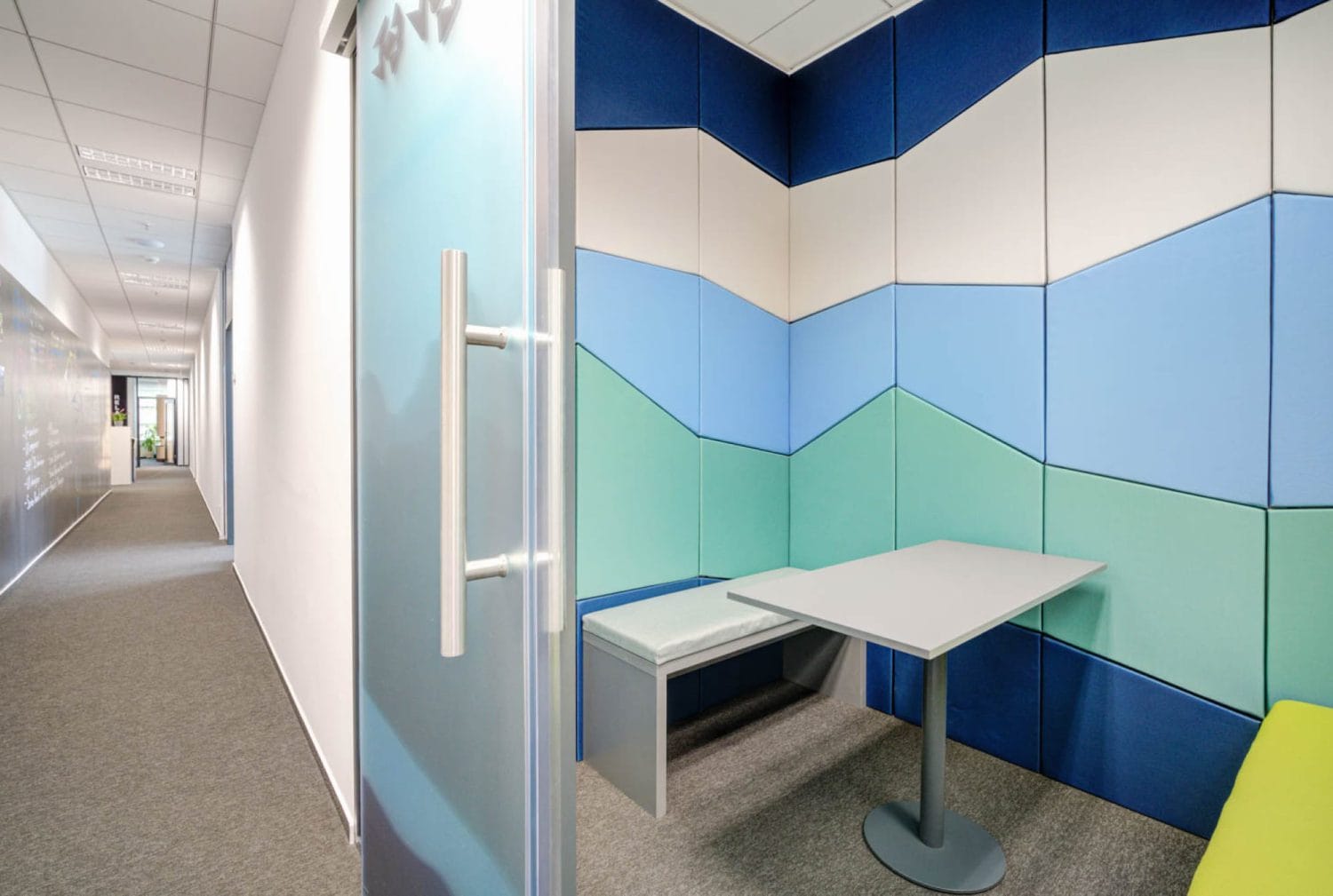 Vašim kancelářím navrheme zasedací místnosti, výklenky a nebo phoneboxy (telefonní budky) tak, aby měl každý prostor na tichou práci a soustředění, ale nepřišel o důležitý kontakt s kolegy. Využíváme při tom oddělovací prvky, akustický nábytek, příčky i prvky zeleně.