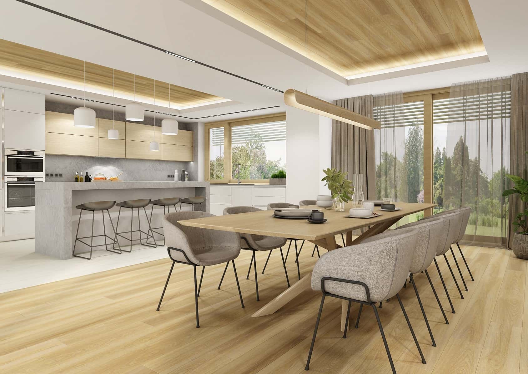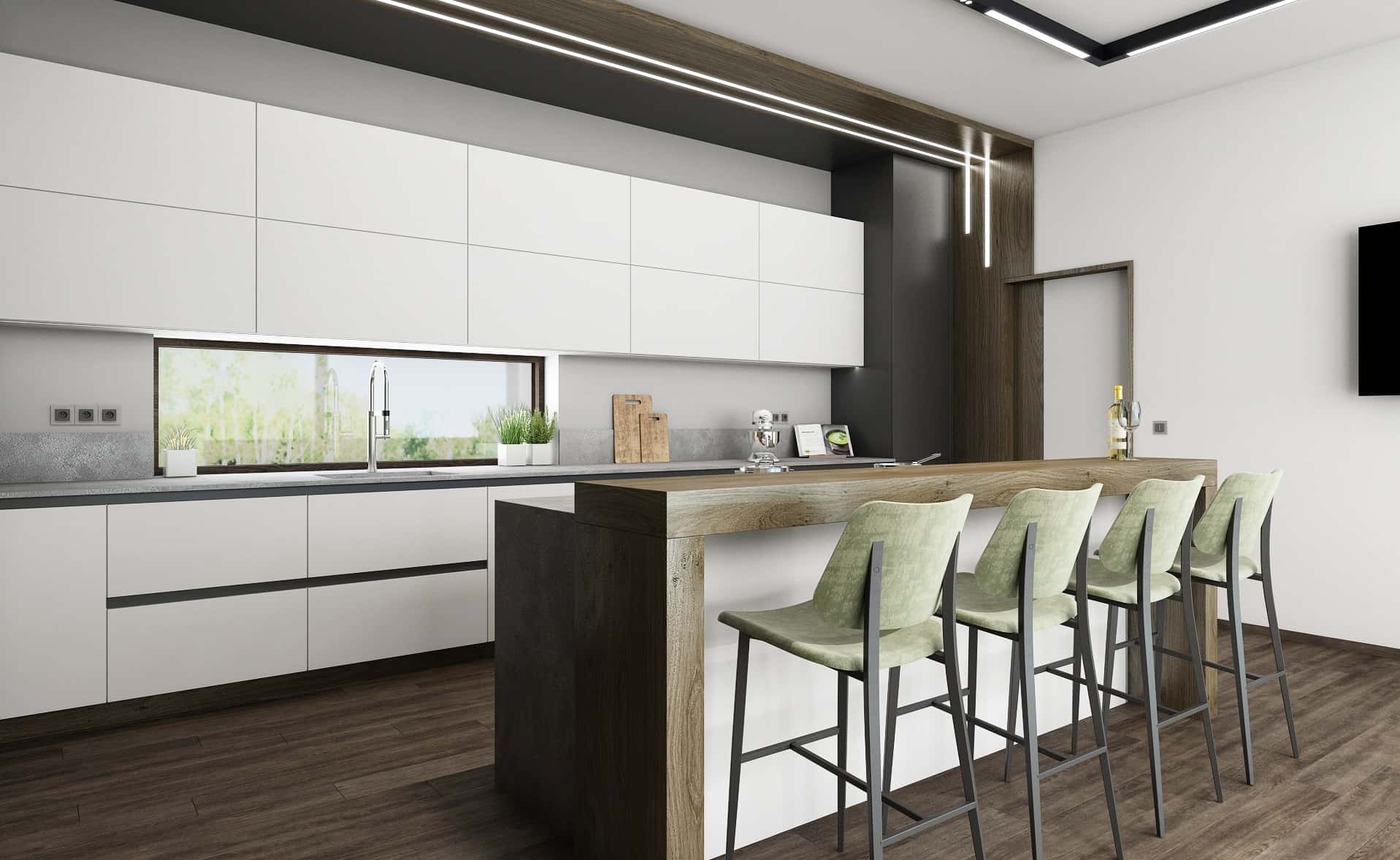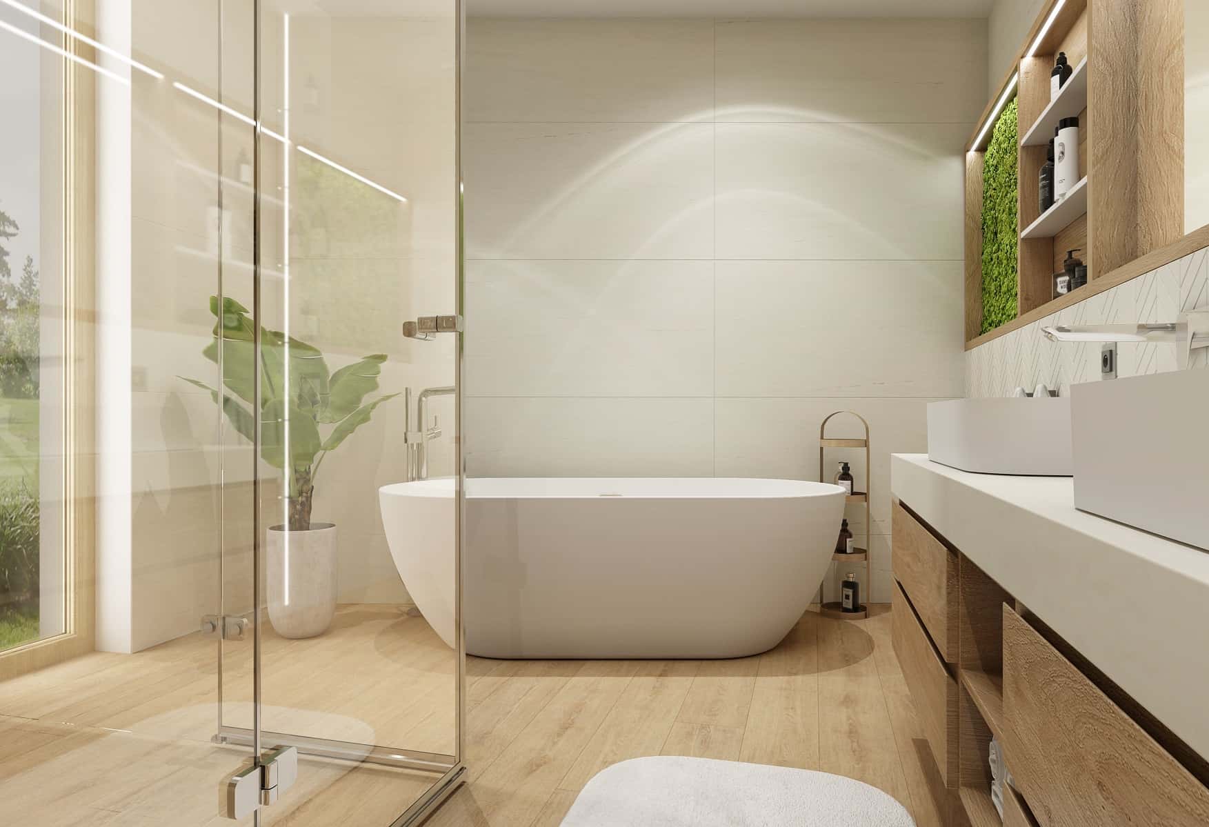 Dokonalou kombinací bude dřevo a kámen. Tyto dva materiály jsou krásným kontrastem, který vynikne nejen v kuchyni, ale i v koupelně. Zatímco kámen působí chladně, dřevo naopak dodá místnosti útulnost a celé to zjemní. Navíc není nadčasovějšího materiálu – dřevo nikdy nevyjde z módy. Znamená návrat k přírodě, je to ekologický materiál a své místo najde všude (podlahy, obklady, nábytek, dekorace…). Malbu pak určitě volte světlejší, v přírodních odstínech, aby co nejlépe vynikl kámen a dřevo.
